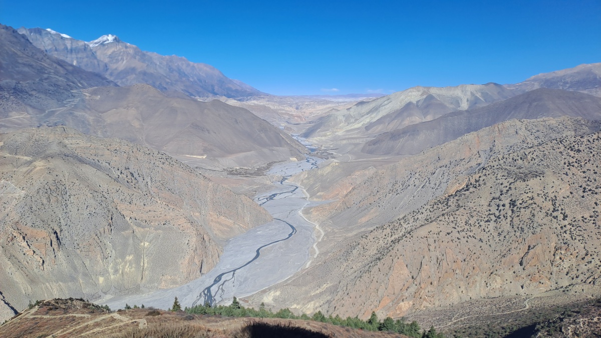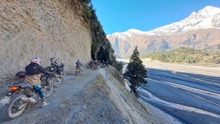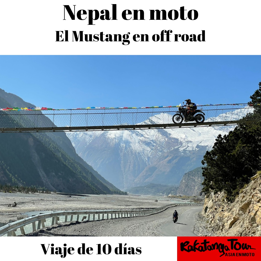 El Mustang, o pequeño Tíbet como se la suele llamar, es la parte noroeste de Nepal que hace frontera con Tíbet. Para acceder él atravesamos uno de los valles más profundos del mundo, que comienza por debajo de los 1000 m rodeado por cumbres de 8000 m. La ruta está. ¡Llenos de sorpresas, cruzaremos numerosos puentes colgantes, uno el mal largo de Nepal, vadearemos ríos, y conduciremos en estrechas y serpenteantes sendas. Pero sobre todo, te sorprenderás de las imponentes vistas de la inmensa cadena del Himalaya que veremos sobre nuestras motos a casi 4000 m con paisajes semilunares a cortar la respiración.